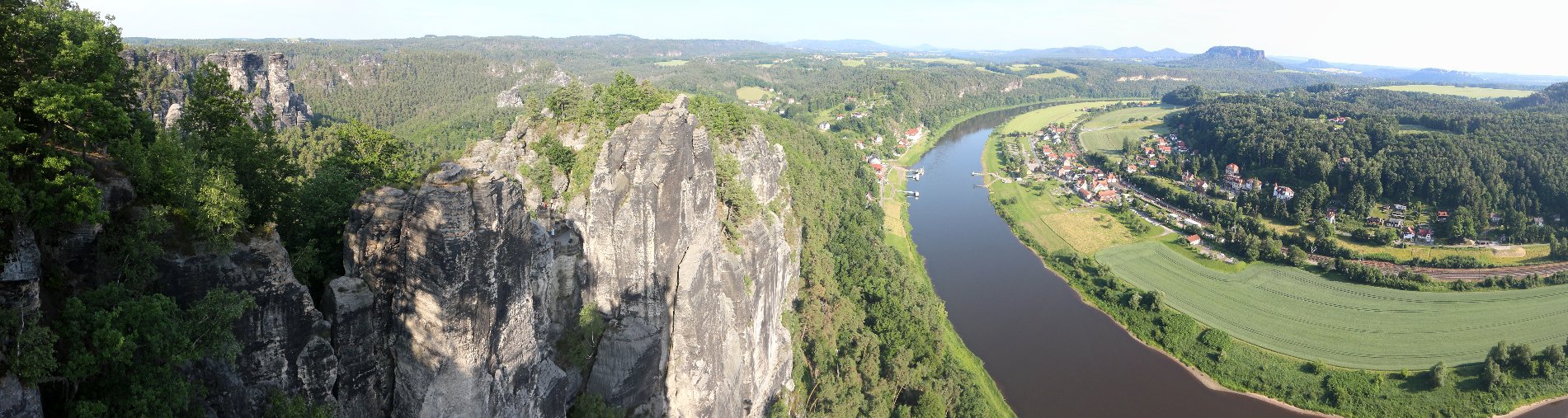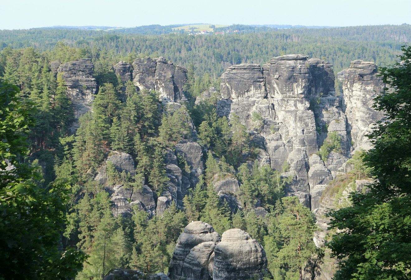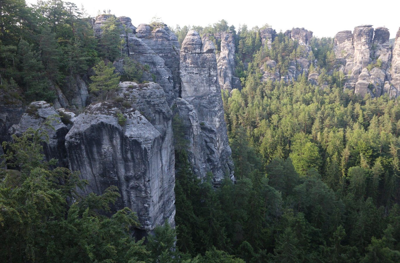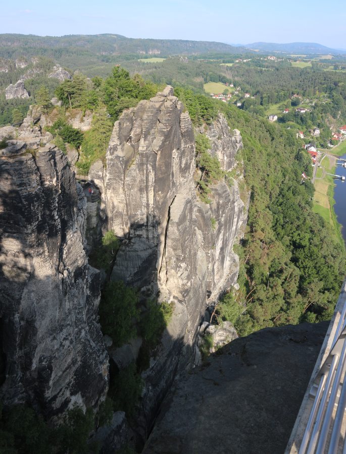 Region. Von der Bastei fällt das schmale Felsriff etwa 190