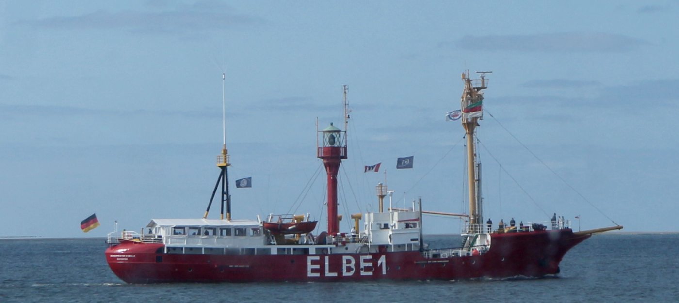 an der Kugelbarke und dem Feuerschiff Elbe-1, das wir am
