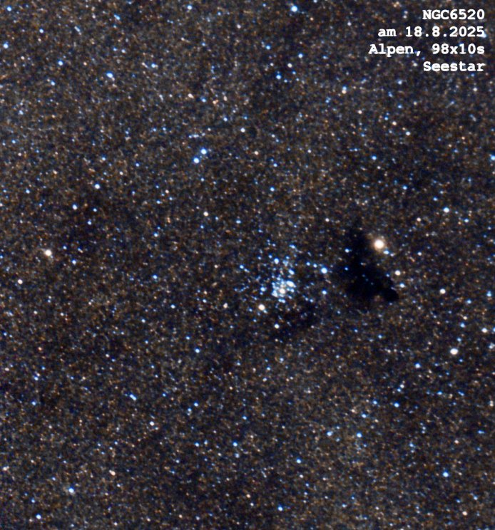 NGC6520 wurde im Juli beobachtet aber nicht fotografiert. Das Foto des