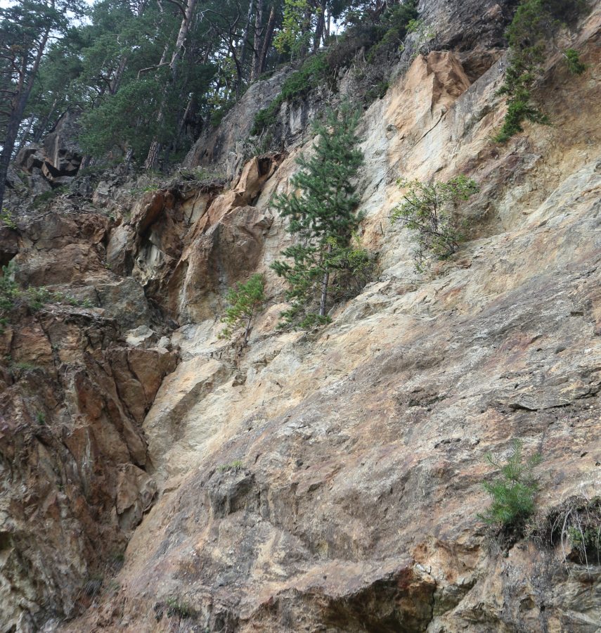 An einem Hang wurde schwefelhaltiges Gestein gefunden. Die Natur bahnt
