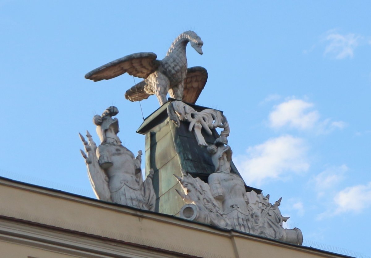 Als Dachbekrönung ein Pelikan.