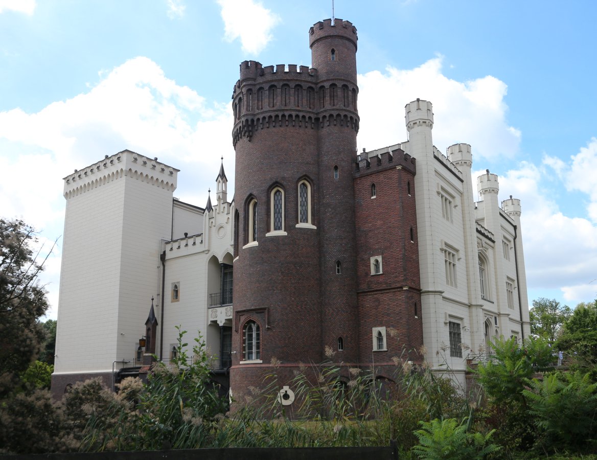 Neogotisches Schloss aus dem 19 Jh. Es wurde 1855 von Schinkel erbaut.