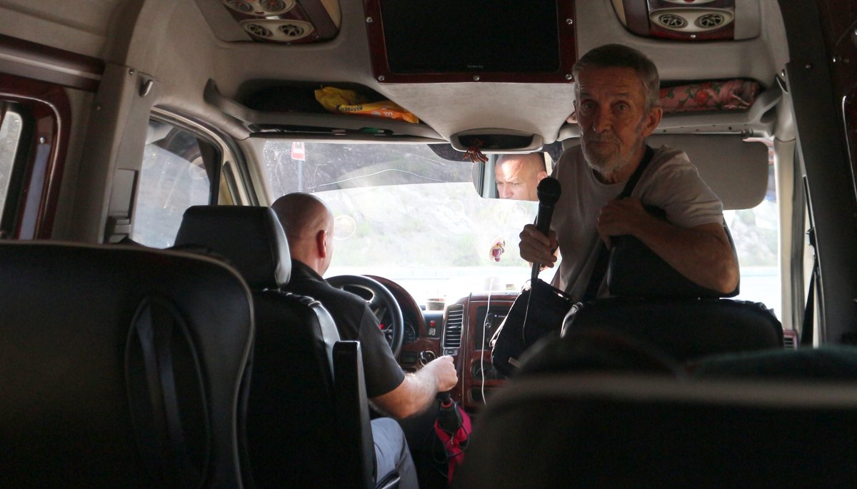 etwa 2 Stunden. Zum Glück war der Bus klimatisiert und die Reise