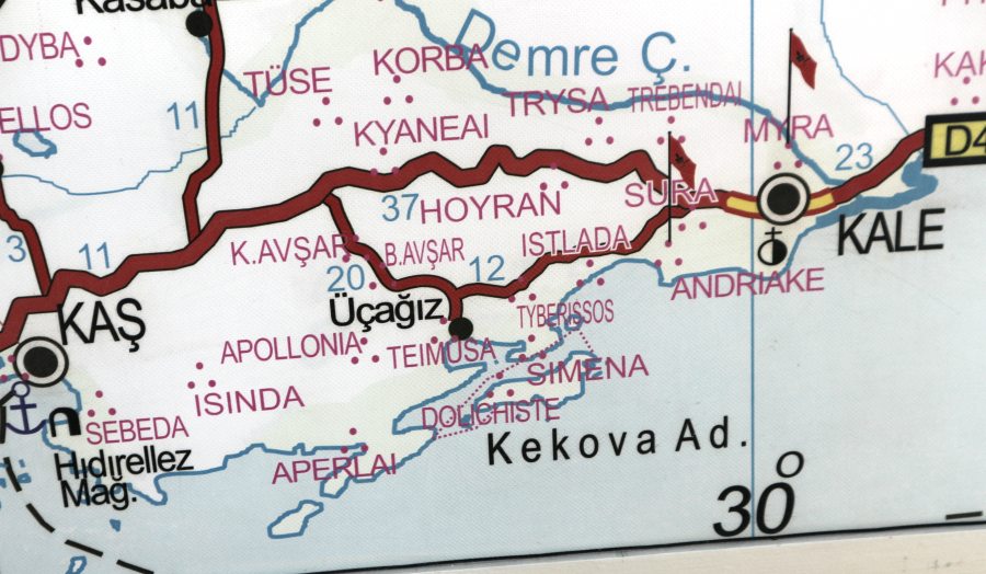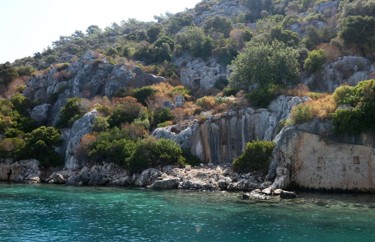 Auf der Nordseite der Insel Kekova liegen die teilweise versunkenen