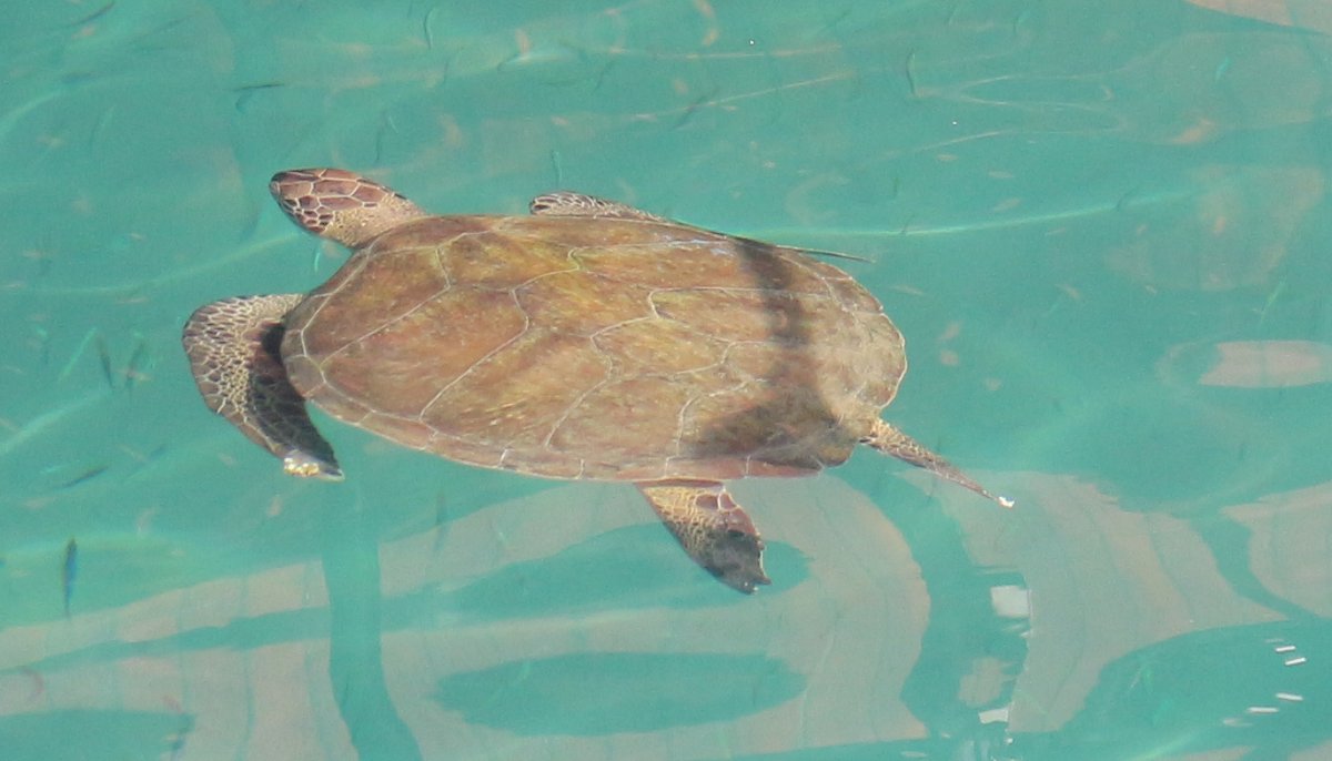 große Schildkröten im Wasser schwimmen. Es handelte sich um