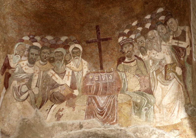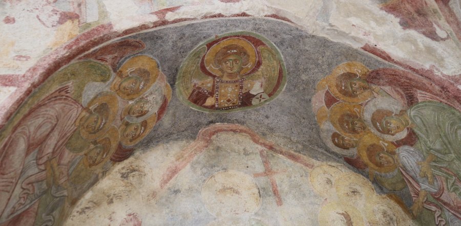 von Wandmalereien das 11 Jh. erhalten. Die Gesichter sind