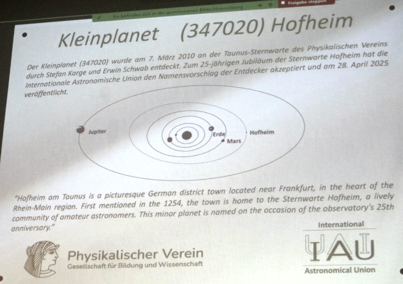 Hofheim bei Frankfurt. Die dortige Sternwarte hatte ihr