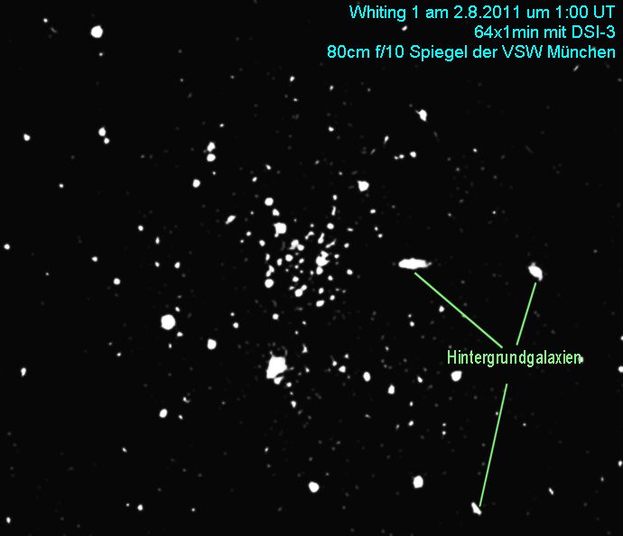 Am 2.8.11 war das Seeing recht gut und so kamen trotz Horizontnähe Whiting1 und Palomar 12 auf die Zielliste.