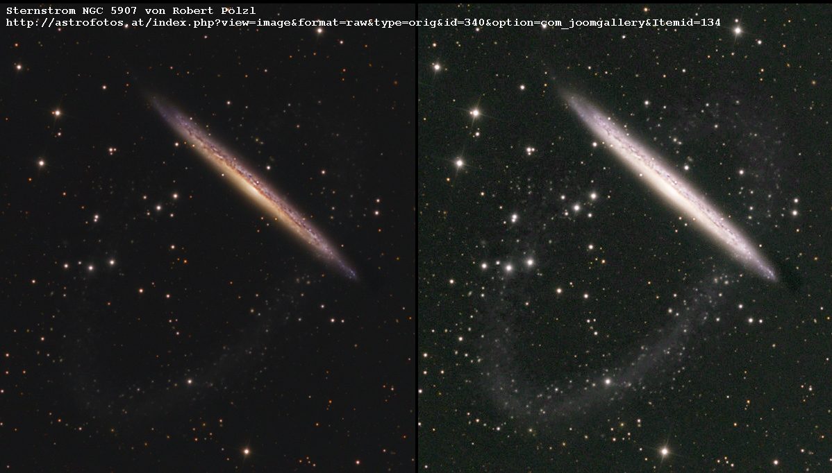 Aber vielleicht so wie auf diesem Bild von Robert Pölzl das einen Sternstrom bei NGC 5907 zeigt.