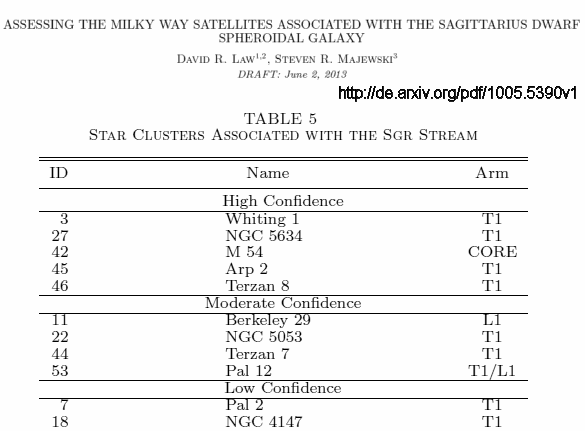 Aus der Liste der Kugelhaufen des Sagittarius-Dwarf wurde zunächst