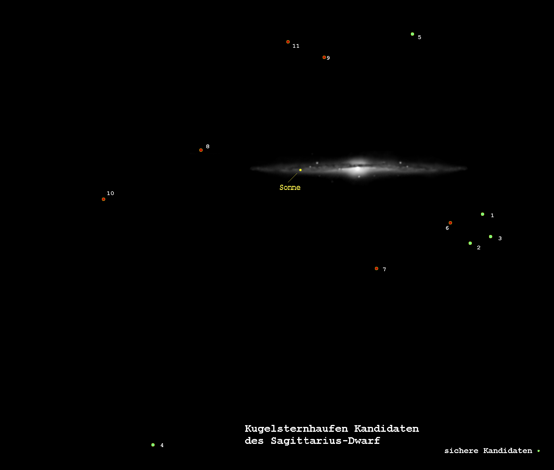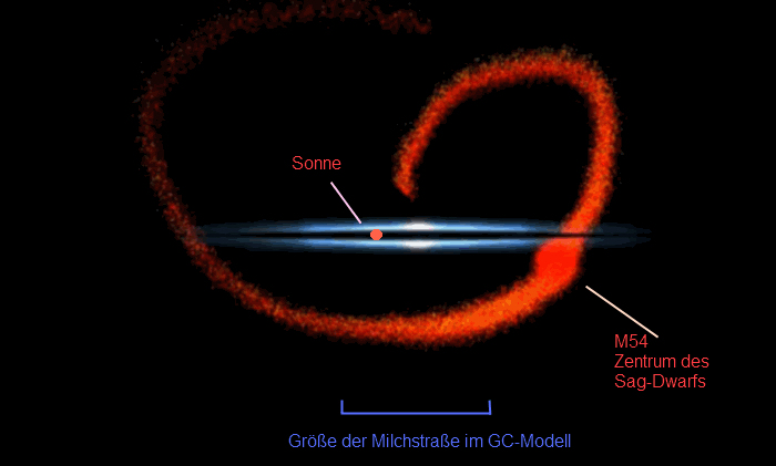 Galaxie. Die Kugelsternhaufen des Sagittarius-Dwarf sollten sich jedoch ebenfalls auf dem Sternstrom befinden.