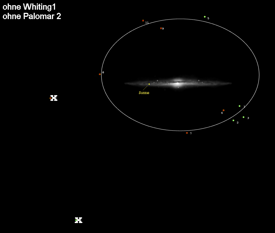 Je nachdem ob alle verdächtigen GCs oder Whiting-1 und Palomar-2 entfernt werden ergeben