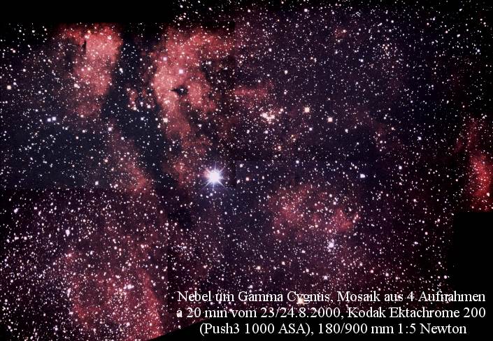 Eine recht ausgedehnte Nebelgruppe befindet sich in der Naehe des Sternes Gamma Cygnus.