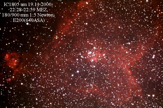 Gleich neben IC1848 liegt der ausgedehnte Wasserstoffnebel IC1805. Er wird