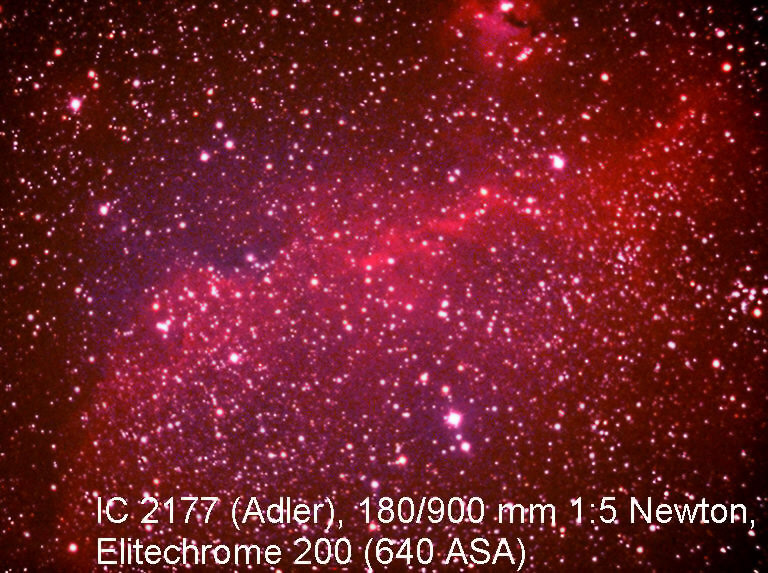 Neben den bekannten 'Highlights' gibt es noch eine Vielzahl lichtschwacher Gasnebel die weniger bekannt sind und darum auch seltener fotografiert werden. Zu ihnen gehört u.a. IC2177. Dieses Objekt liegt etwa 5 Grad nordöstlich des hellen Sterns Sirius. Die relative Horizontnähe erschwert die Beobachtung. Im lichtverseuchten Europa ist IC2177 wegen seiner geringen Höhe kaum noch sichtbar. Die Lichtglocken der Städte machen über dutzende von Kilometern jede Sichtung unmöglich.