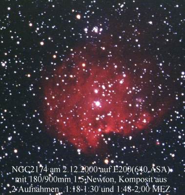 Dunkelwolken. Unten rechts ist NGC2174 zu sehen. Dieses Objekt ist unter guten Bedingungen auch