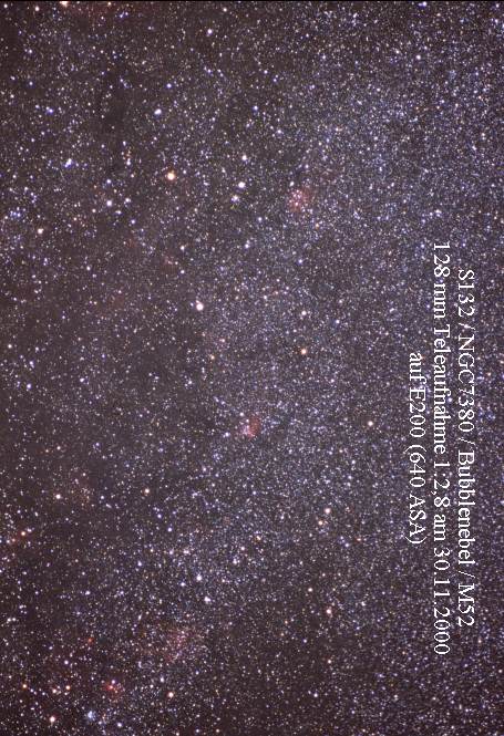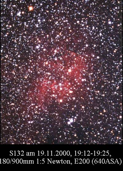 Unweit von NGC7380 steht die HII-Region S132. Sie ist sehr diffus, der Uebergang zur Milchstrasse