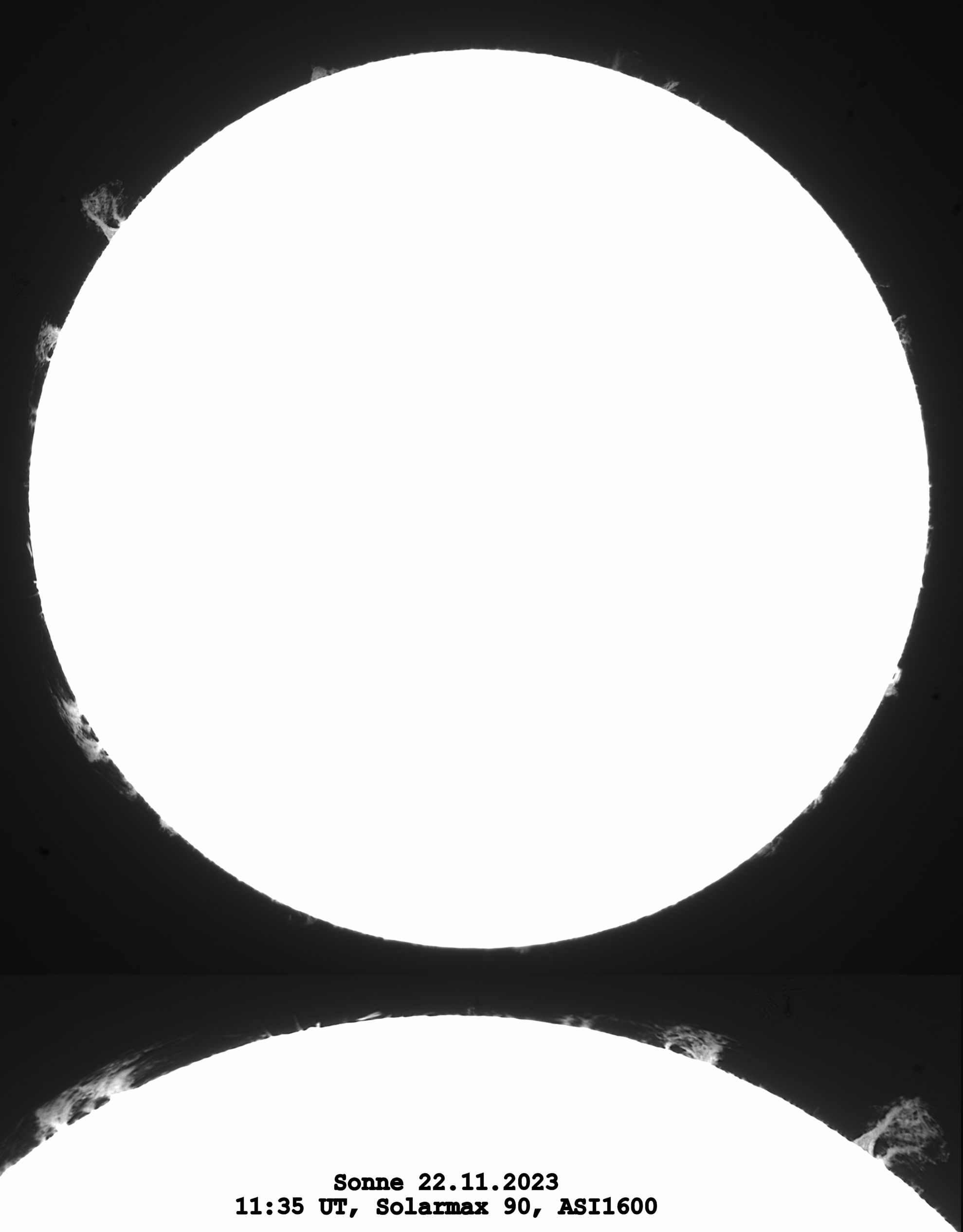 Auch am 22.11.23 gab es schöne Protuberanzen.
