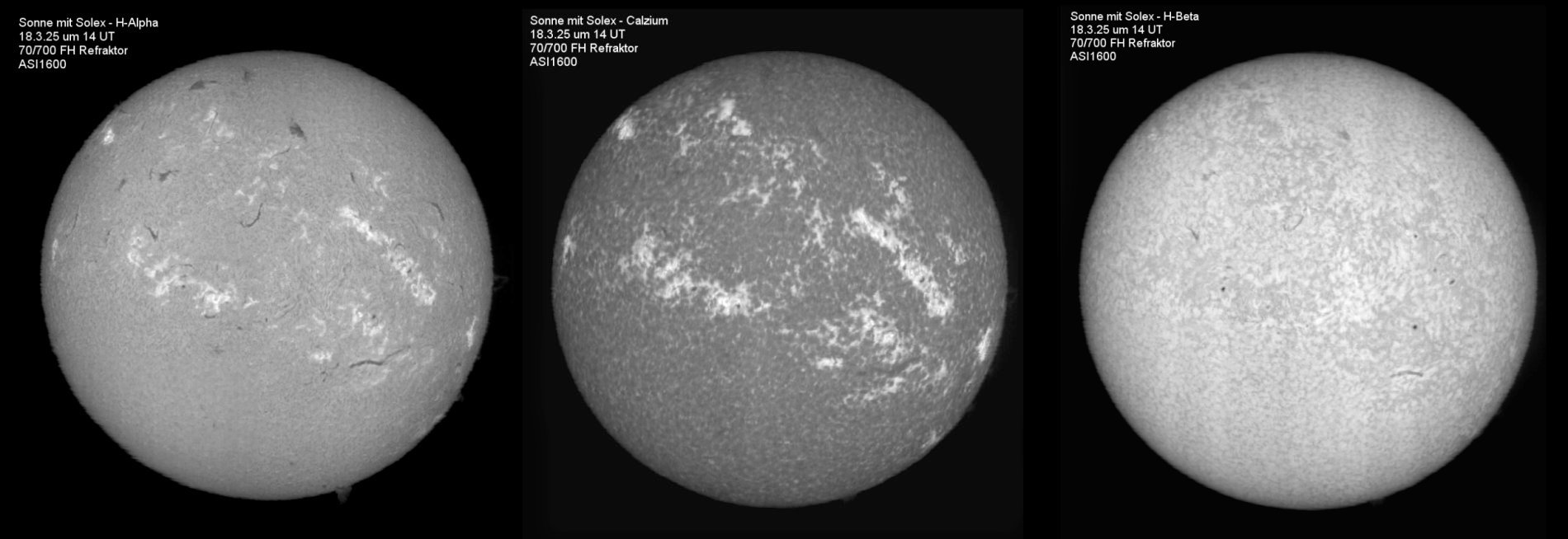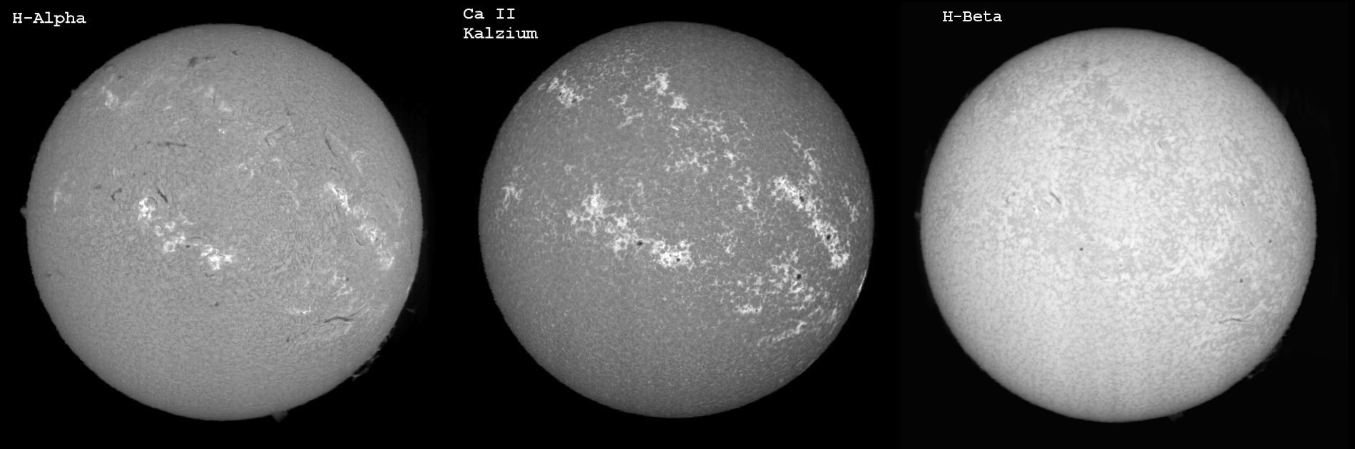 Beobachtet wurde an den 3 Tagen auf der H-Alpha, der Calzium und der