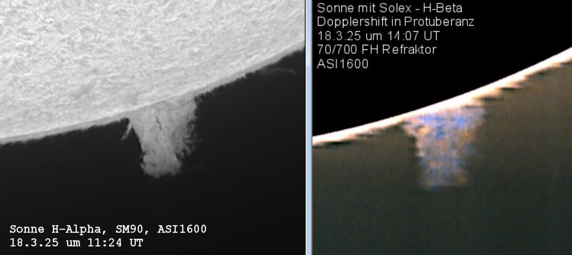 aufsteigt und blauverschoben ist. Im H-Alpha-Licht war dies weniger gut