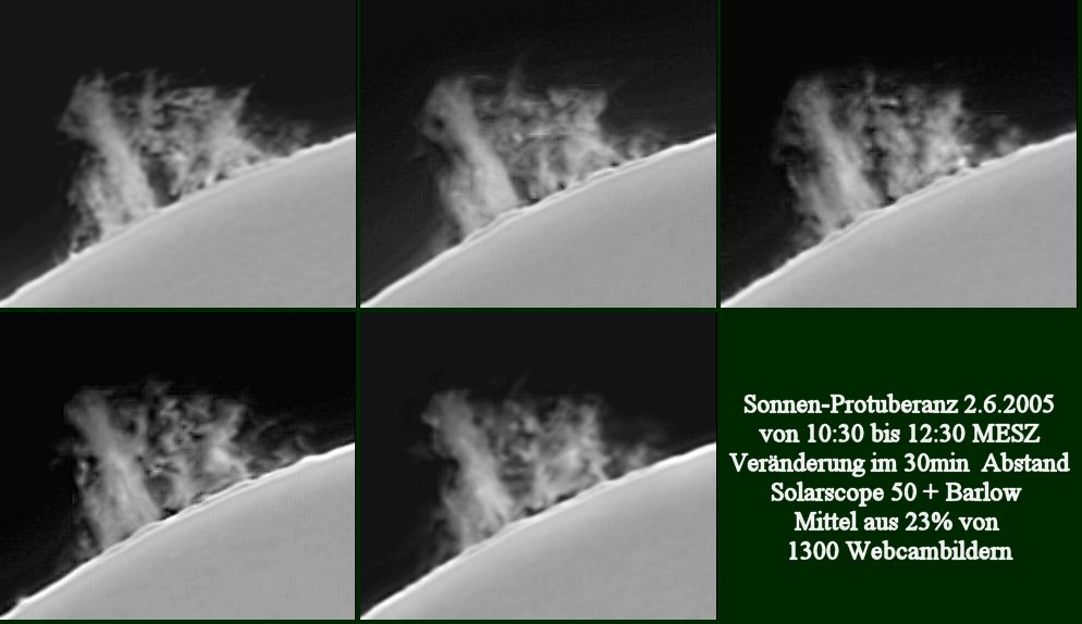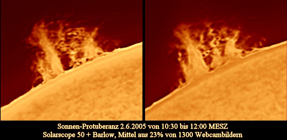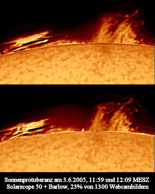 Sonne im H-Alpha mit Solarscope 50 am 2.6. und 3.6..2005