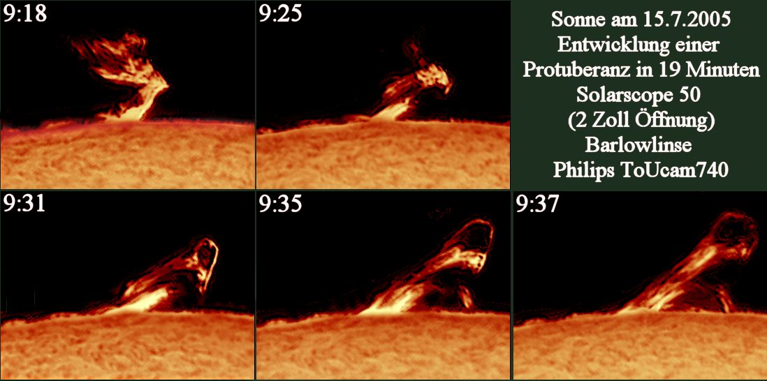 Sonne im H-Alpha mit Solarscope 50 am 14.7.2005 und 15.7.2005