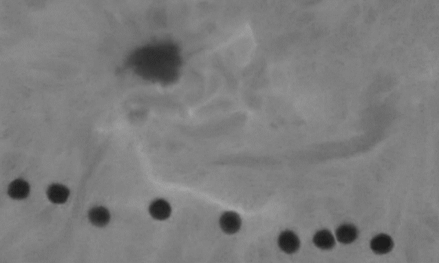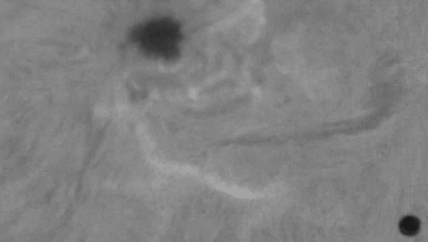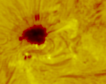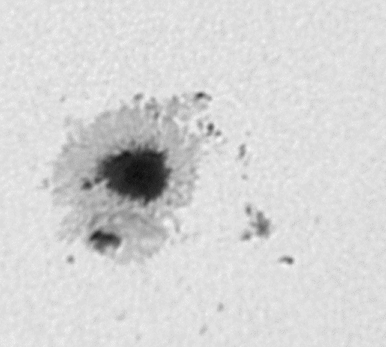 Der große Sonnenfleck steht am oberen Bildrand. Die Qualität der unbearbeiteten Rohbilder