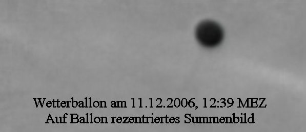 Die Instrumentengondel war selbst auf einem ballonzentrierten Summenbild nicht zu erkennen.