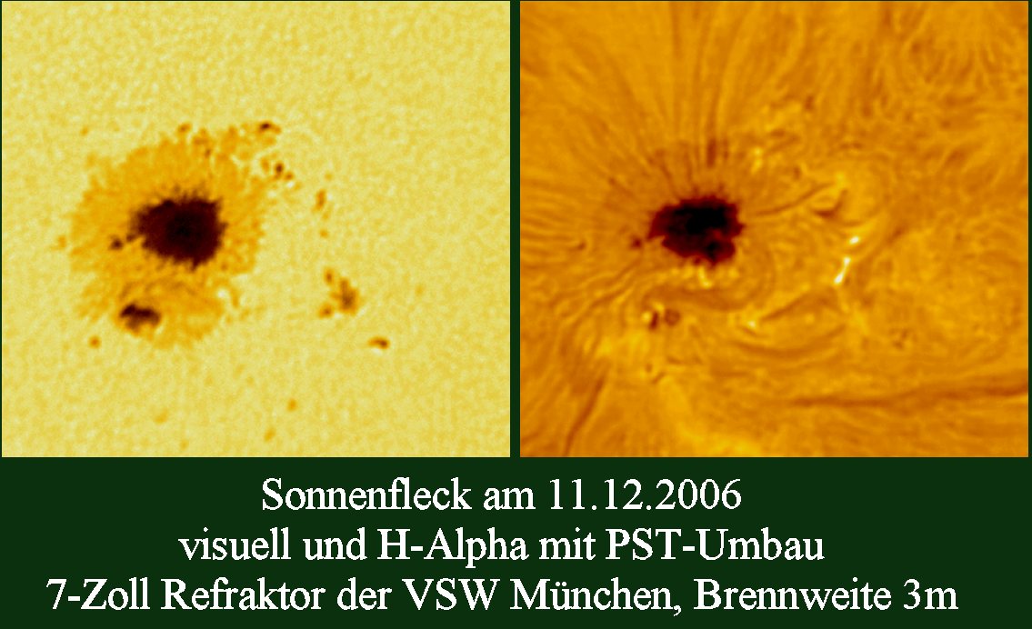 Riesenflecks. Die folgenden Bilder zeigen die Aktivitäsregion einmal im H-Alpha und einmal im