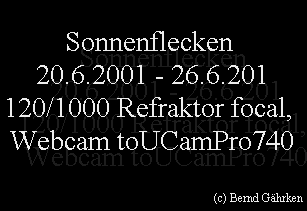 Die Sonne mit einer Webcam 20.6. - 27.6.2001