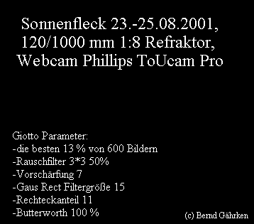 Webcamaufnahmen der Sonne vom 23. - 27.8.2001