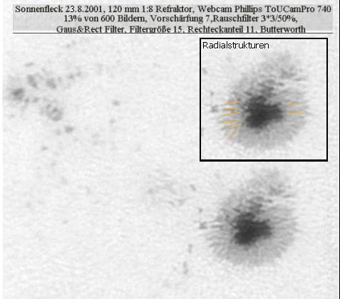 Die beste Einzelaufnahme der Serie entstand am 25.8.2001. Auf ihr sind deutlich radiale Strukturen zu erkennen.