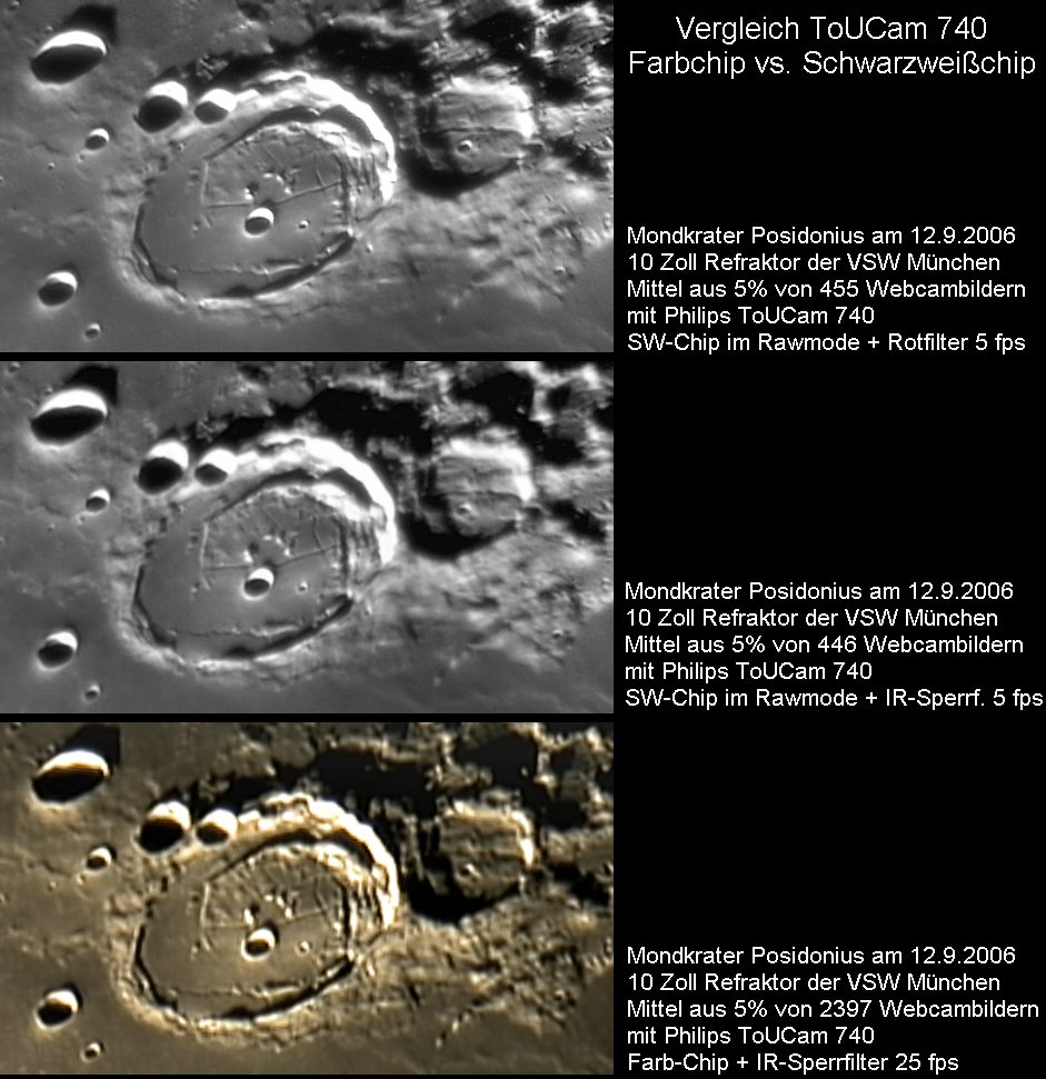 Ein erster Vergleich von Farbwebcam und umgebauter SW-Webcam erfolgte am