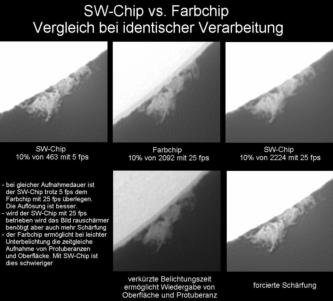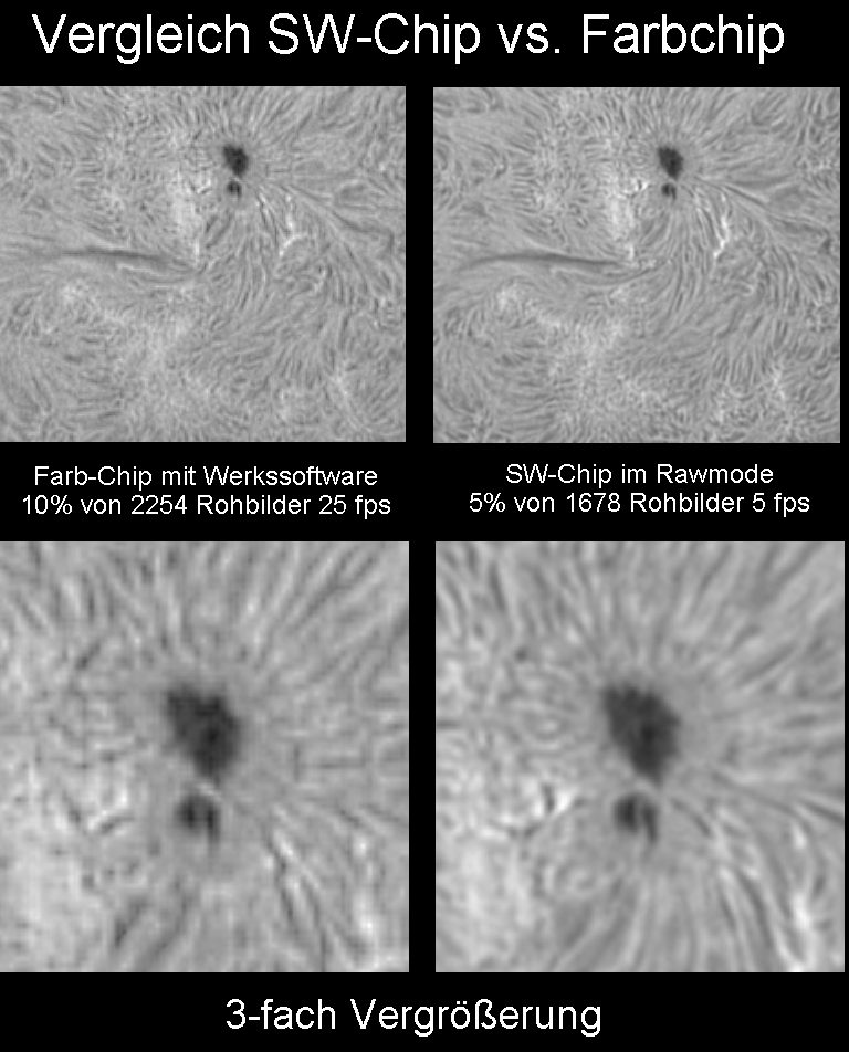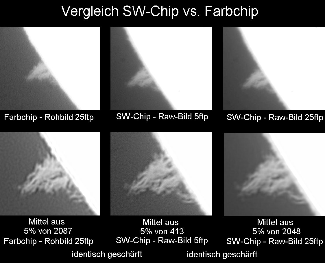 Oft ist der Unterschied im Summenbild zwische Farb- und SW-Chip